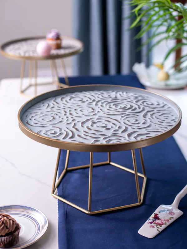 This large cake stand is the perfect way to elevate your cake presentation. The gold-colored metal construction is both stylish and durable, and the sturdy base ensures that your cake will stay in place. The large size is perfect for showcasing even the most elaborate cakes, and the open design allows for easy access to the cake.