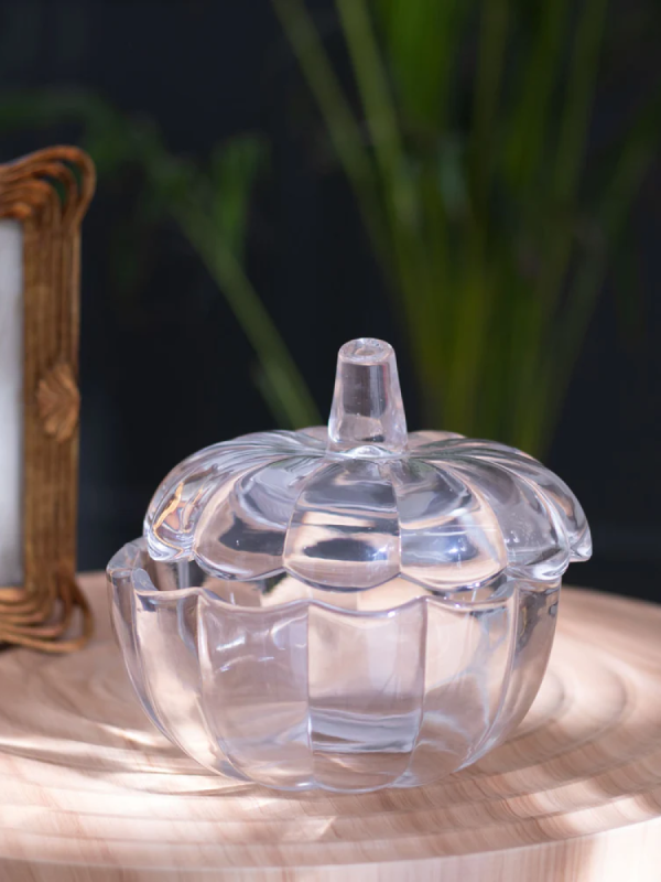 A stylish and elegant way to store your favorite candies. This crystal glass jar is made from high-quality glass and features a simple yet classic design. The clear glass allows you to see your candies inside, and the gold rim adds a touch of luxury.