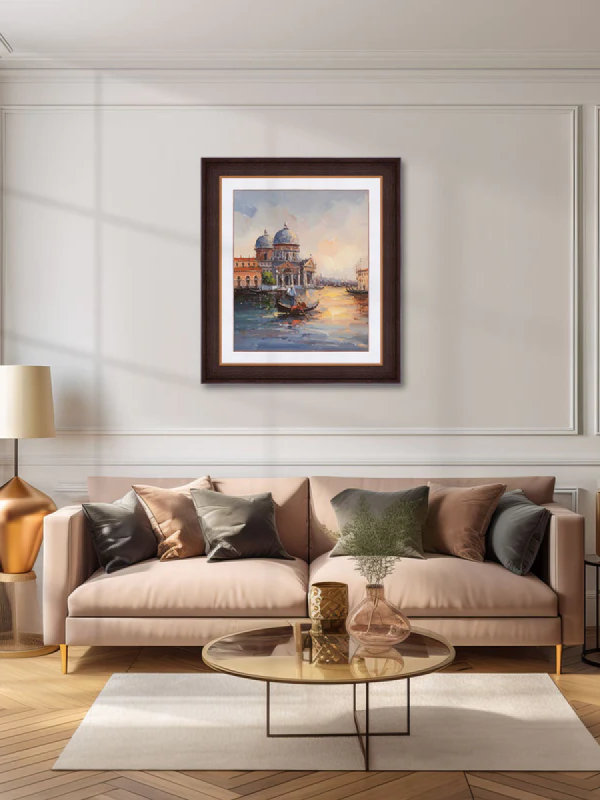 This is a beautiful handmade oil painting depicting a scene of Venice, Italy. The painting is done in a realistic style, and the artist has captured the details of the city, the canals, and the gondolas.