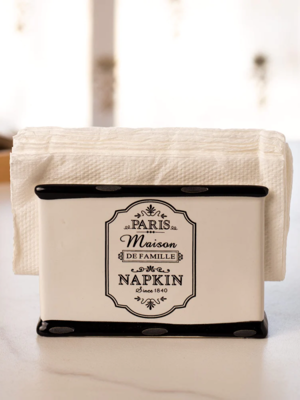 Paris Maison De Famille' Napkin Holder is a stylish and functional way to keep your napkins organized and within reach. Made from high-quality ceramic with a white glaze and distressed finish, this napkin holder features the words "Paris Maison De Famille" in black lettering. The Paris Maison De Famille' Napkin Holder is the perfect addition to any table setting. It is a great way to add a touch of French charm to your space, and it is also functional and practical.