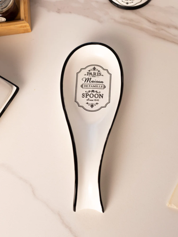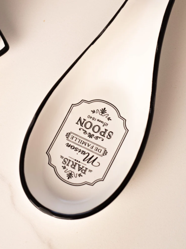 Paris Maison De Famille' Spoon Rest is a stylish and functional way to keep your kitchen counters clean and tidy. Made from high-quality ceramic with a white glaze and distressed finish, this spoon rest features the words "Paris Maison De Famille" in black lettering. The Paris Maison De Famille' Spoon Rest is the perfect addition to any kitchen. It is a great way to add a touch of French charm to your space, and it is also functional and practical.